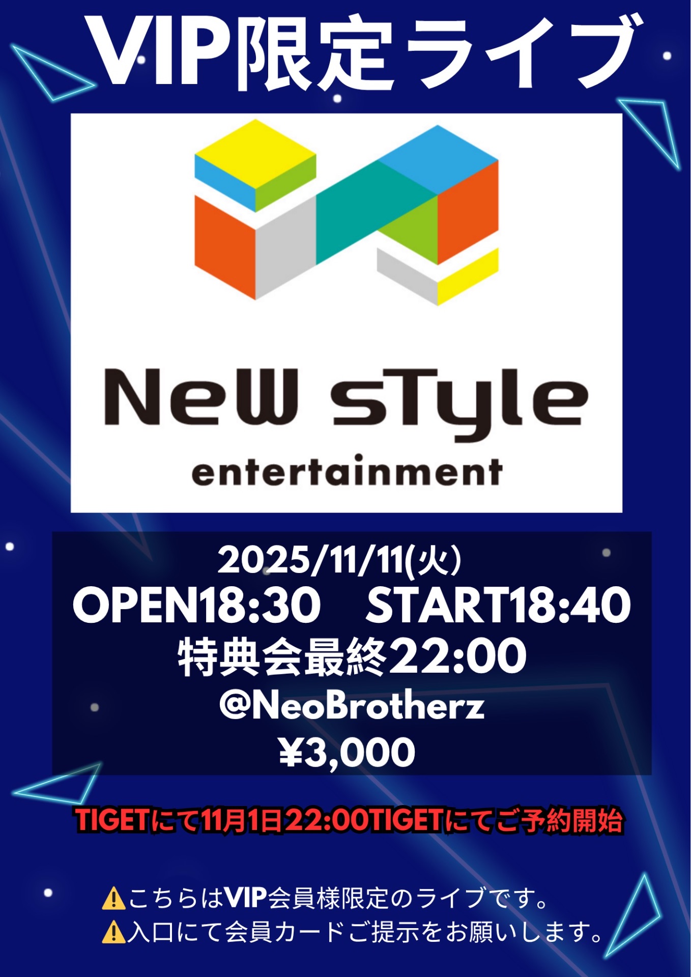 - 2025年11月11日(火) NeW sTyle entertainment「VIP限定ライブ」開催!